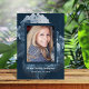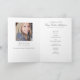Blue vintage hydrangeas complique une photo préférée sur ce programme de célébration de la vie. Facile à customiser pour le mémorial de votre être cher. Inclut l'espace pour une autre photo, la nécrologie, l'ordre de service et les détails du mémorial. Une version abrégée et plate de cette conception est disponible ici : https://www.zazzle.com/z/t4t4t30s?rf=238018966791033951