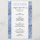 Menu déjeuner hydrangée bleu abordable pour toutes les occasions. Bordures florales sur les côtés avec du texte noir imprimé au centre. Texte moderne haut en haut, avec le nom de la mariée et la date de la douche / occasion. Utilisez-le pour des douches nuptiales, des réceptions de mariage, des fêtes de fiançailles ou toute occasion nécessitant un joli menu floral. Customisez facilement chaque section de modèle de texte sur le papier de format 5x8 pouces.