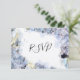 Customisez la jolie carte de réponse RSVP de mariage bleu Hydrangea Flowers Watercolor Wedding avec votre date de réponse de mariage spécifique. Cette élégante carte fleurie de mariage r.s.v.p. présente une photo florale peinte à l'aquarelle numériquement de pétales de fleurs d'hydrangée bleu clair ornant les coins d'un arrière - plan blanc.
