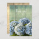 Merci cartes avec arrière - plan de grains de bois et fleurs d'hydrangée bleue. Utilisation pour les mariages, anniversaires, hospitalité ou toute autre raison. L'écriture est pour l'amitié et est facile à changer ou à supprimer.