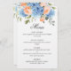 Blue Hydrangea Pink Blush Rose Menu Mariage