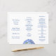 Programme de mariage triplé en blanc avec texte bleu et design de fleur d'hydrangée bleue. Remplir en tiers après l'achat pour créer trois pages avec le titre, les noms, la date et l'emplacement du service à l'avant. La section centrale contient les informations de cérémonie avec la droite pour lister la fête de mariage, note personnelle aux invités, en mémoire, ou tout ce que vous souhaitez. Une image d'hydrangée bleu clair se trouve au bas de la section du milieu.