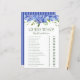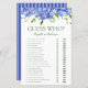 Cette belle hydrangée bleue Guess Who? nuptiale feuille de jeu de douche est élégant et charmant - parfait pour tout jardin, botanique, rustique, romantique, floral, formel ou vintage mariage. Son magnifique mélange d'hydrangées bleues multicolores gracieuses et de verdure feutrée est fleurie, délicate et belle. Ce jeu amusant et facile est sûr d'apporter beaucoup de rire à toute douche nuptiale! Vous serez surpris du nombre de réponses que les gens sauront. En quelques secondes, vous pouvez voir comment votre feuille de jeu va apparaître. Sélectionnez simplement Personnaliser ce Modèle et tapez les noms de la mariée et du marié.