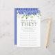 Cette belle hydrangée bleue How Old Are They? nuptiale feuille de jeu de douche est élégant et charmant - parfait pour tout jardin, botanique, rustique, romantique, floral, formel ou vintage mariage. Son magnifique mélange d'hydrangées bleues multicolores gracieuses et de verdure feutrée est fleurie, délicate et belle. Ce jeu amusant et facile est sûr d'apporter beaucoup de rire à toute douche nuptiale! Demandez à votre famille et à vos amis de vous envoyer des photos de la mariée et du marié à tous les âges et de les faire imprimer. Numérisez-les et mettez-les près de ces feuilles de jeu. Donnez simplement un drap à chaque invité (n'oubliez pas les stylos) et laissez la compétition commencer ! Vous serez surpris de voir combien de personnes connaissent vraiment l'âge de la mariée et du marié. En quelques secondes, vous pouvez voir comment votre feuille de jeu va apparaître. Sélectionnez simplement Personnaliser ce Modèle et tapez les noms de la mariée et du marié.
