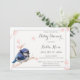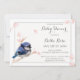 L'invitation de baby shower comporte un pot bleu bébé perché sur une branche. Cliquez sur customiser plus loin pour modifier le style, la taille ou la couleur de la police.