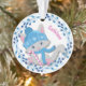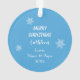 Un mignon petit chaton gris se trouve à l'intérieur d'une couronne de jour férié bleu ciel sur le devant de cet ornement. Le chaton porte un casquette bleu avec des flocons de neige blancs et une écharpe d'hiver. Elle tient un sucre de canne rayé rose et blanc. Le nom de votre enfant est rose en haut à droite. L'arrière de l'ornement est bleu uni assorti, avec des flocons de neige blancs éparpillés et votre texte personnalisé dans cinq champs. Facile à customiser, et n'importe quelle petite fille adorerait cet ornement de gardien d'un parent ou grand-parent.