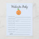 Joli petit baby shower à thème mignoné souhaits pour carte bébé avec un fruit orange avec un sourire. Les textes sont modifiables. Une activité parfaite pour jouer sous la douche et sera certainement un grand gardien ! Ce design bleu est parfait pour une douche pour garçon.