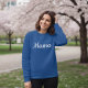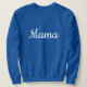 Intense royal blue crewneck sweatshirt with a minimalist white cursive script. The design features the word "Mama" (or "Dad") centered on the chest, creating a clean and coordinated look. It is perfect for parent couples, pregnancy announcements, or as matching gifts for the whole family.