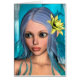 Mignonne sirène avec cheveux bleu et vert et fleur de lys d'eau jaune sur un imaginaire bleu arrière - plan océan