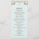 This personalized Baroque Christian Wedding Menu card is the perfect addition to your vintage-inspired, God-centered celebration. Featuring an ornate mocha-tone frame detail against a soft dusty blue background, this menu card exudes timeless elegance. The monogram of the couple's initials adds a personal touch, while the combination of modern and script fonts and a meaningful bible verse on the back brings a graceful, sophisticated style. Ideal for a Rococo Wedding or a religious regency-themed celebration, this vintage design brings a classic and refined touch to your event, making it a truly memorable part of your special day.