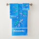 Monogramme Nom Cute Blue Sea Turtle Blue Watercolor Fish Kid's Child Bath Towel Set Jote under the sea design avec tortues de mer. Idéal pour une salle de bain pour enfants sur le thème marin.