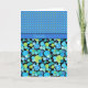Un Carte de remerciements chic avec l'accueil en gallois et un mix'n'match motif des Pois turquoise et jaune sur le bleu azur et un motif Blur Moons coordonné et décalé dans deux tons de Vert et Turquoise sur un arrière - plan noir.