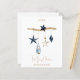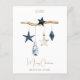 Arrière - plan blanc, bois marron, décoration de Noël bleu et blanc. Des étoiles bleues et blanches, et une femme de gnome bleu. Joyeux Noël écrit avec un script de style à la mode et à la main. Retour : ajoutez votre message et le logo de votre entreprise. Ajoutez votre code QR à votre site web. 1 feuille = 1 invite imprimé bord à bord.