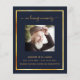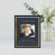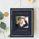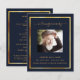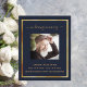 Un programme élégant de 2 pages. Un arrière - plan bleu foncé, un cadre en faux or et un espace pour votre photo. Personnalisez et ajoutez le nom, les dates et votre texte.