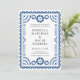 Cette belle décoration de faire-part de mariage d'inspiration papel picado présente un cadre orné de couleur bleu vif, un arrière - plan blanc classique et une typographie moderne. Ce design élégant et moderne est un choix fabuleux pour un mariage latino ou un mariage de destination mexicaine. Vous pouvez customiser encore plus ce design en ajoutant une photo ou un texte supplémentaire à l'arrière-plan. Voir plus de la collection ci-dessus...
