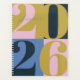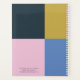 Artful and bold, this personalized planner spiral notebook features a bold four color design with large Arabic numerals to denote the year and two areas of text for personalization: the notebook's use (planner, notes, school, etc.) and contact information on the backside of the notebook to help return the book to its owner if lost. The design of bold blocks of shell pink, deep ocean blue, periwinkle and warm pea green bring an earthy and fearless vibe with you into the new year, make it the best one yet!