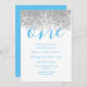 Blue Silver Boys 1er anniversaire Invitation Belle Parties scintillant d'or Faux Confetti Invitation. Collection correspondante dans Niche et Nest store. Design avec l'aimable autorisation de Studio Danemark