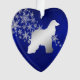Ce joli ornement de Noël fera un merveilleux cadeau de souvenir pour quiconque aime une Hound Afghane! Il présente une silhouette argentée afghane devant un jet de flocons d'argent orné. L'image est placée sur un arrière - plan bleu profond dégradé. L'arrière de l'ornement a le même arrière - plan bleu et des flocons de neige, et un champ de texte pour vous de customiser.