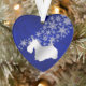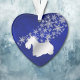 Ce joli ornement de vacances fera un merveilleux cadeau de conservation pour quiconque aime un Terrier écossais! Il présente une silhouette argentée de Scottie, en face d'un jet de flocons de neige argentés. L'image est placée sur un arrière - plan bleu profond dégradé. L'arrière de l'ornement a le même arrière - plan bleu et des flocons de neige, et un champ de texte pour vous de customiser. Belle !