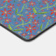 Add a little cheer to your work with a whimsical, hand-painted watercolor floral patterned desk mat, featuring playful red and yellow daisy blooms dancing on a sky blue background.