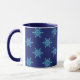 This pretty mug features my original artwork of vintage illustrated snowflakes in blue. It has a blue color inside it and on the handle. These are 11-ounce mugs, just the perfect size for your home brewed coffee or tea - or even hot chocolate! It would make a great gift, and you can put packets of coffee, tea bags or hot chocolate inside. One other gift idea is putting a little plant in it to make it extra special for your loved one. A fun gift for a winter lover, skier or a Christmas Holiday gift for anyone.