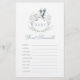 Elégant et sophistiqué jeu "Baby word scramble", conçu pour une douche bébé à thème vintage. Doté d'une charmante cigogne portant bébé garçon dans une crête mignonne et motif bleu en vichy bébé à l'arrière, ce jeu classique ajoute une touche de style intemporel et amusant à votre événement. Idéal pour divertir les clients et créer des souvenirs chéris, c’est un complément idéal à une fête de baby shower sucrée et préppie. Réponses : 1. couche 2. hochet 3. sucette 4. formule 5. grossesse 7. poussette 8. siège auto 9. bouteille 10. pépinière