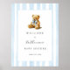 Elegant Blue Stripes Bear Baby Shower Welcome Poster
