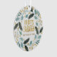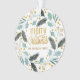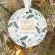 Joli bleu et jaune verdure hiver Noël férié couronne acrylique ornement avec texte dans une police de caractères mignon, fantaisie, "Joyeux Noël." Personnalisé avec votre nom ou votre nom de famille.