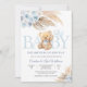 Celebrate in style with this charming baby shower invitation featuring a sweet teddy bear holding balloons, elegant floral accents in soft blue and beige, and modern typography. Perfect for honoring parents-to-be, this customizable card sets the tone for a joyful gathering. Designed with a timeless pastel palette, its ideal for baby showers, gender reveal parties, or welcoming a little one. Personalize with event details to create a keepsake guests will love.