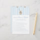 Add a touch of elegance to your cute preppy baby boy shower with our sophisticated "Over or under" game. Featuring a charming teddy bear wearing a cute blue bow, holding blue balloon, surrounded by light blue stripes, this delightful activity is perfect for enterntaining your guests and creating lasting memories.