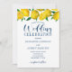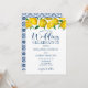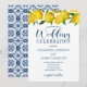 A beautiful lemon wedding invitation with lemons and blue and white Italian Mediterranean tile. Personalize it for your special day. Designed for you by Blackberry Boulevard.