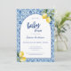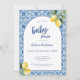 A fresh lemon-themed baby shower invitation featuring blue tile details and a soft watercolor look, perfect for a bright and joyful celebration.