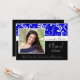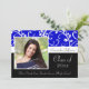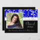 Graduation Invitations avec photo et Classy bleu, noir et blanc Design avec des fleurs et des vignes tourbillonnant fluides. Style mignon, chic, délicat et féminin pour toute jeune fille ou diplômée. Montrez votre style personnel avec ce bel invitation photo. Grand comme une faire-part de remise de diplômes ou une invitation à la fête de remise de diplômes.