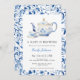 Célébrez dans un style intemporel avec cette invitation "A Baby is Brewing" bleu toile. Doté d'une théière classique et d'une tasse aux bordures florales d'aquarelle bleue complexe, ce design raconte l'histoire de l'élégance et de la tradition, ce qui le rend parfait pour un baby shower sophistiqué.