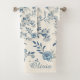 A detailed vintage floral illustration in blue tones, featuring delicately drawn branches, leaves, and blossoms on a light background, creating a classic and elegant botanical look. Toile-de-Jouy. Customize the name.