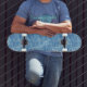 Skateboard avec un design moderne d'eau bleue vague. Laissez-le tel quel ou ajoutez notre propre texte en cliquant sur le bouton pour modifier la conception du modèle.