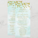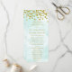 Programme de mariage personnalisé en motif d'aquarelle bleu bleu clair avec confetti d'or. Veuillez noter que l'or est un effet photographique seulement.
