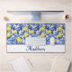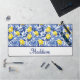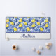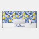 This Blue French Country lemon monogram desk mat blends sunny yellow lemons with rich blue leaves for a fresh Mediterranean look. Perfect for those who love personalized French country decor and timeless blue tile elegance. Personalize with your name.