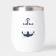 Les pièces de cette élégante suite de mariage présentent un style nautique classique et un style épuré et minimaliste. Des vagues stylistiques dans les teintes allant de l'aqua au bleu marine et une illustration d'ancrage et de corde apportent des accents uniques. La fine tuyauterie bleu marine donne à ce vin thermo tumbler design un look moderne saisissant. Idéal pour les mariages de club nautique, de bateau, de plage ou d'été. Recherchez ID836 pour voir cette suite complète et d'autres avec des accents d'éléments marins alternatifs.