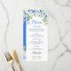 Menu mariage floral marguerite bleu et blanc. Ce menu mariage de marguerites bleu et blanc est un bon choix pour un mariage d'été ou un mariage de printemps. Ce menu de mariage de marguerite ou de shasta daisy propose de belles marguerites blanches (pétales blancs, centres jaunes) d'aquarelle avec fleurs bleues et feuilles verts. Ce menu de mariage de marguerite à prix abordable a un look champêtre, il est donc parfait pour un mariage de style champêtre. D'autres personnalisations sont possibles (police, couleur de police, couleurs arrière - plans, etc.), en cliquant sur "cliquer pour customiser le lien" sous les options de personnalisation. Contactez le concepteur si vous souhaitez que d'autres éléments correspondants soient associés à cette conception qui n'est pas déjà incluse dans la collection.