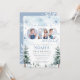 Create a magical winter atmosphere for your little boy's first milestone with this blue Winter Onederland birthday invitation/template, featuring watercolor pine trees and a custom photo collage.