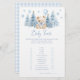 Ajoutez une touche d'élégance à votre douche pour bébé à thème d'hiver avec notre jeu sophistiqué "Baby Traits". Doté d'un charmant ours en peluche à l'arc bleu mignon, tenant un ballon bleu, entouré de pins d'hiver et de flocons de neige et d'un motif en vichy bleu bébé à l'arrière, cette activité délicieuse est parfaite pour divertir vos invités et créer des souvenirs durables. Idéal pour ajouter du plaisir et de l'excitation à votre célébration spéciale!