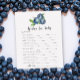 Carte d'invitation baby shower mignonne avec aquarelle illustrant les bleuets. Le texte dit "un bébé doux aux baies est en route." Éléments correspondants disponibles.