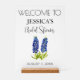 Bluebonnets, bleu floral, Texas, nature aquarelle Douche nuptiale signe de bienvenue. Elégante, calligraphie simple, photo Panneau de douche nuptiale. Personnalisez-le avec vos détails.