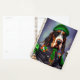 Un ami en fureur derrière les guidons d'une moto verte brillante, portant une tenue verte de la Saint Patrick qui fait tourner la tête. Le chien est habillé d'un ensemble festif, avec une cravate arc-en-ciel verte et un chapeau haut assorti qui se trouve doucement au-dessus de la tête. Le costume présente des motifs complexes de shamrocks et de leprechauns, ce qui indique clairement que ce chien est prêt à célébrer la Saint Patrick avec style.