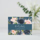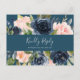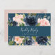 Cette carte postale RSVP, couleur bleu marine, est parfaite pour un mariage floral. Le design classique et élégant présente une aquarelle moderne bleu marine et des fleurs roses rousses sur un arrière - plan bleu turquoise. Cette carte postale de réponse mariage demande à la clientèle quel repas elle souhaite à la réception.