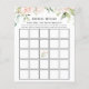 Carte de bingo de douche nuptiale avec fleurs roses et verdure. Une façon amusante d'interagir avec les invités de douche pendant que la future mariée ouvre ses cadeaux à son wedding shower.