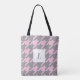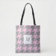 Une prise moderne sur un motif houndstooth traditionnel surdimensionné en rose et gris avec monogramme personnalisé des deux côtés.
