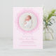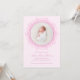 Share your baby girl’s arrival with this blush pink birth announcement featuring a delicate floral frame and elegant script typography. The circular photo layout beautifully highlights your newborn’s portrait, creating a soft and timeless design.