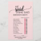 Ce jeu de recherche de mots mariage de calligraphie rose vif est parfait pour une douche nuptiale élégante. Le devant de la carte de jeu comporte "il a dit qu'elle a dit", ce qui est un quiz amusant sur la mariée et le marié. Le verso de la carte contient un mot de recherche avec des mots et des phrases mariages. Le design est composé d'une police cursive romantique et douce sur un arrière - plan rose ballet clair, charmant et délicat. Personnalisez la carte de jeu avec le nom de la mariée et la date de la douche nuptiale.